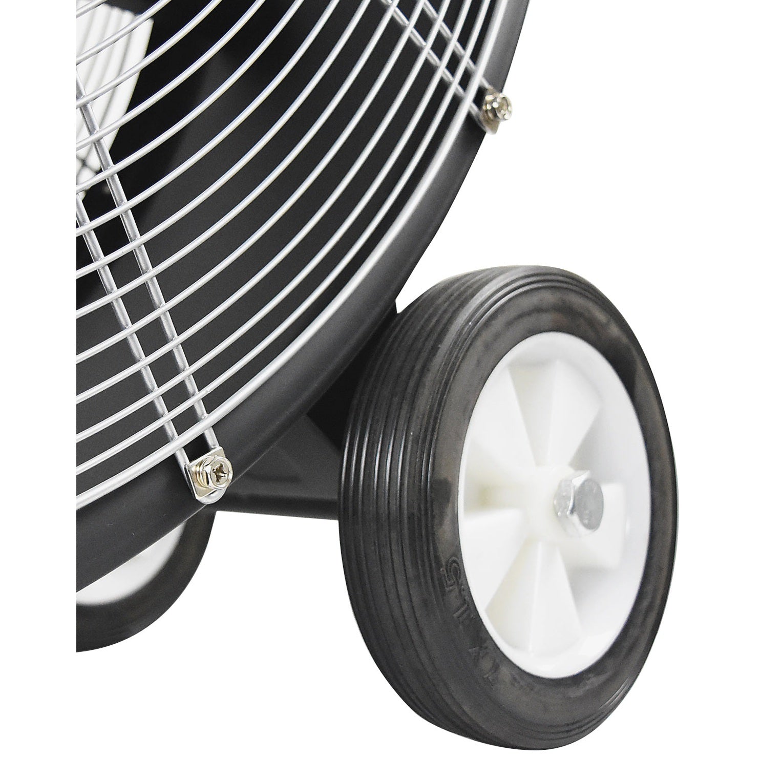 - Wheels make this fan very portable
